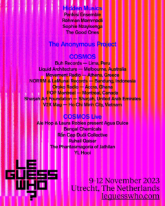 Fresh additions to the general lineup include Hania Rani, introducing her alter-ego Chilling Bambino, blending piano, synth, and voice in a quietly mesmerizing mix of classical and contemporary textures, Ata Kak, the Ghanaian artist whose mix of highlife, early hip-hop, and funk turns every track into a dancefloor adventure, Bhajan Bhoy, the project of Lancashire-born, Netherlands-based Ajay Saggar, who brings his meditative organ works, first performed in a 15th century church in Yorkshire, and London-based producer Djrum, who explores piano, harp, and electronic textures in Under Tangled Silence, balancing intimacy with rhythmic energy. From the outskirts of Rio, singer songwriter Caxtrinho brings his debut album Queda Livre, a bold fusion of Brazil’s experimental Vanguarda Paulista tradition, Devendra Banhart returns with a stripped-back solo set that moves through his psychedelic, acoustic, and folk-inspired repertoire, and Daniela Pes and IOSONOUNCANE join forces for a live collaboration that fuses Pes’s ethereal vocals and instrumental fluidity with IOSONOUNCANE’s finely sculpted electronic textures. Vocalists Lamisi, Gavina, and Maria Alice bring Afro-fusion pop, Panamanian folklore-infused grooves, and Cape Verdean mornas and coladeras, respectively, each shaping a vivid and global soundscape. Experimental performances also include Heinali & Andriana-Yaroslava Saienko, whose Гільдеґарда pairs modular synths with Ukrainian vocal techniques, and Tunisian and Dutch composer, audiovisual artist, curator, and science educator Skander Jaïbi, who blends classical composition, choral textures, and ambient soundscapes in his debut album Who Has the Right to Closure?. Gina Birch, co-founder of The Raincoats, brings her solo record Trouble, merging post-punk, dub, and experimental rock into an introspective yet fiery statement, augmenting a lineup that cements Le Guess Who? 2025 as a festival of curiosity, boldness, and musical discovery.